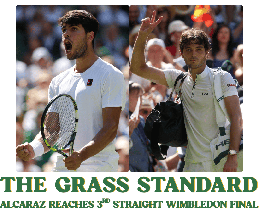 Carlos Alcaraz is back in the Wimbledon final for a third-consecutive year after surviving a tense semifinal against No. 5 seed Taylor Fritz that nearly went the distance.