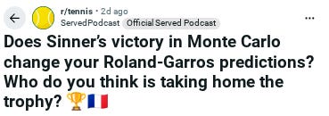This week on Served, Andy and the whole crew have a lot to analyze from the first Sincaraz match of 2026 and Valentin Vacherot proving he is no flash in the pan at home in Monte Carlo. Plus, Producer Mike pitches a fan-friendly ranking system.