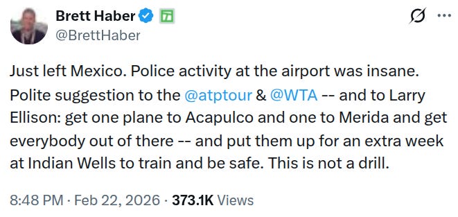 Both the Acapulco ATP 500 and Mérida WTA 500 in Mexico are pressing ahead—without any player withdrawals as of this morning—despite the cartel violence erupting in the country following the killing of drug lord El Mencho.