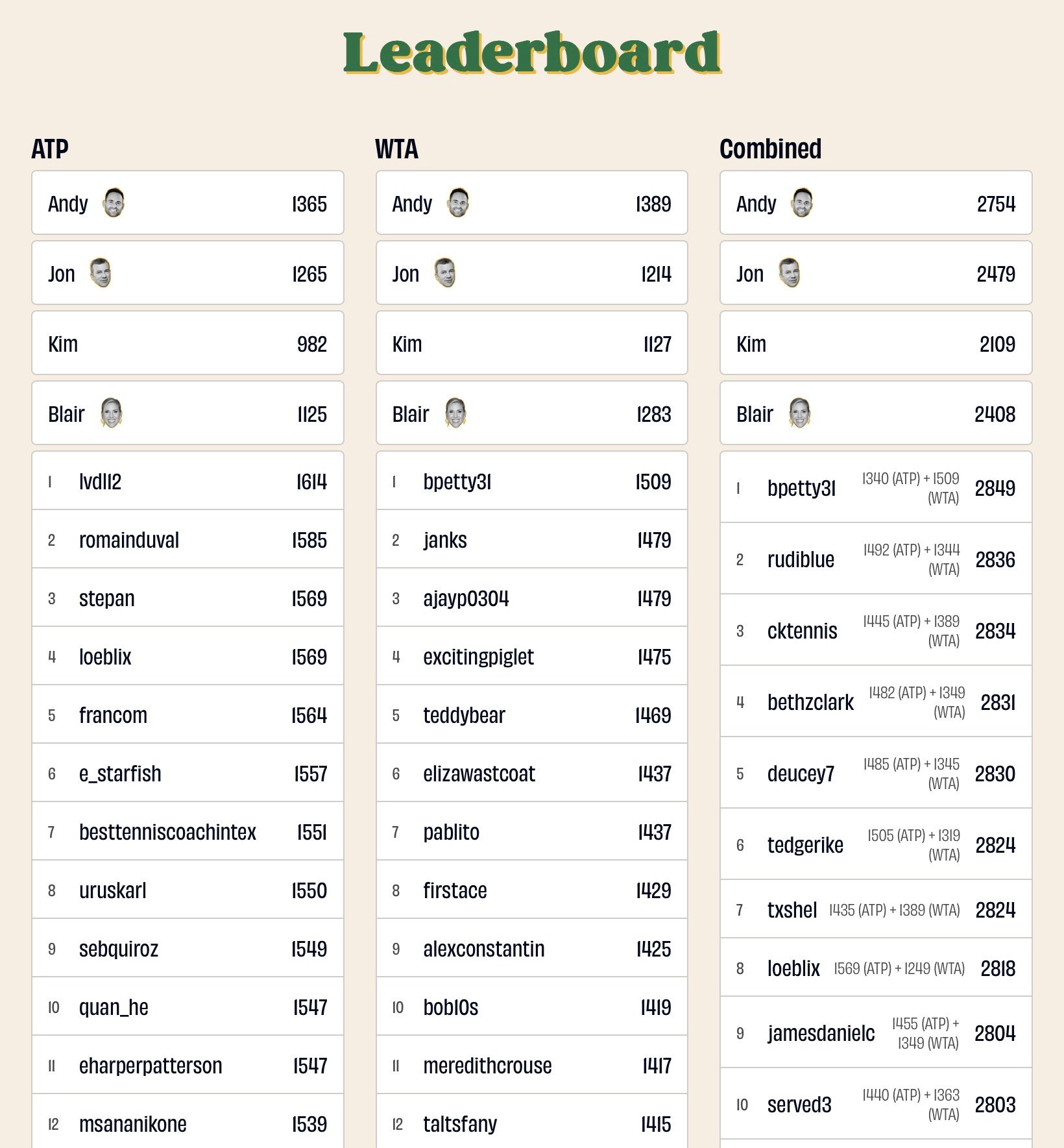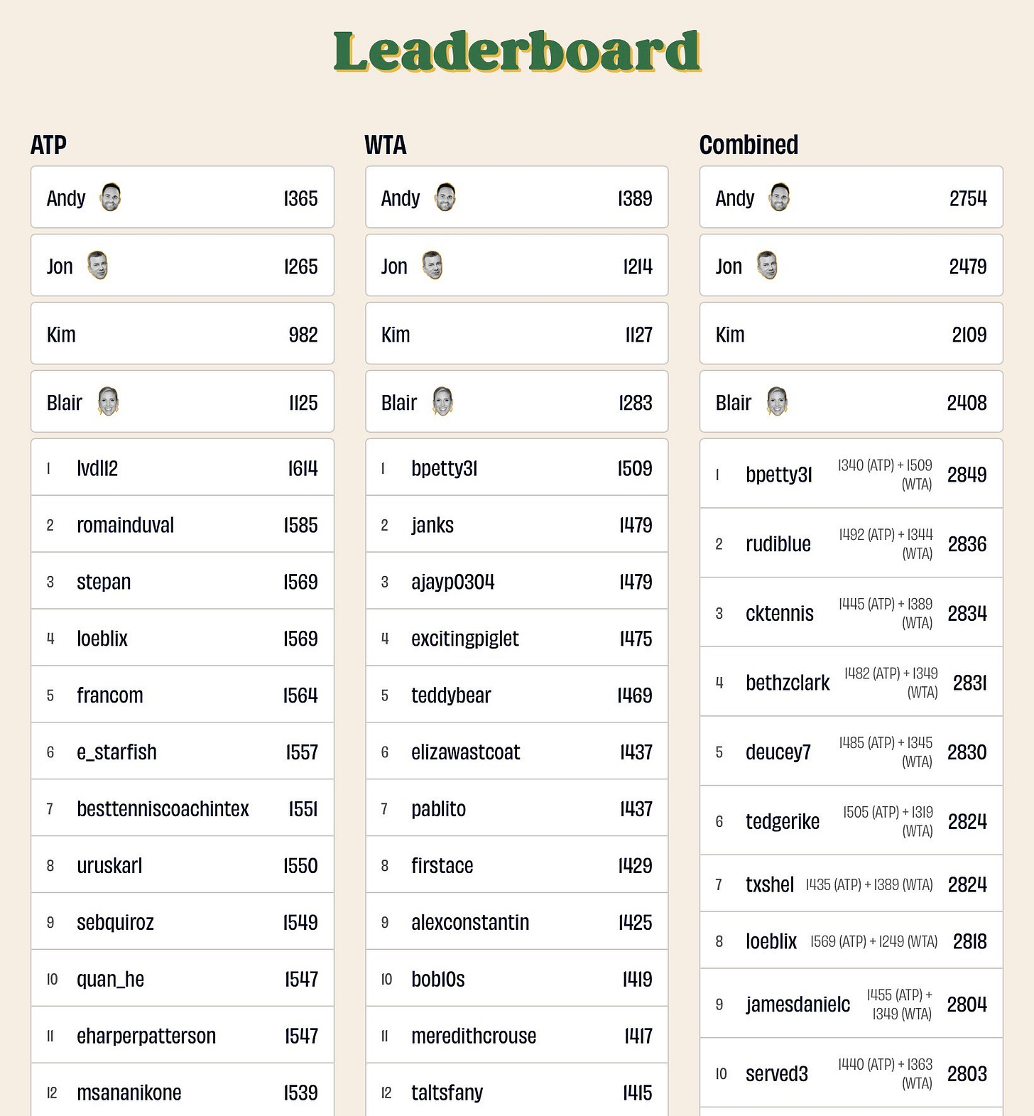 Medvedev’s loss all but tanks JW’s bracket—he had Meddy in the finals. (Sneaky stat: Meddy went 450 sets without being bageled at a major until last night.)