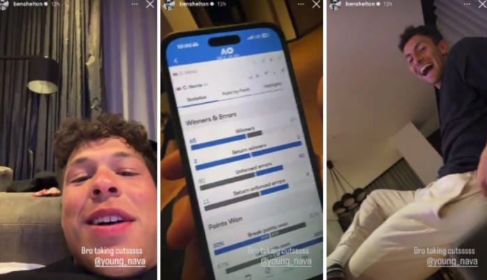Ben Shelton roasted his friend Emilio Nava on social media for racking up stats that nearly defy natural law in Nava’s second-round loss to Cam Norrie.