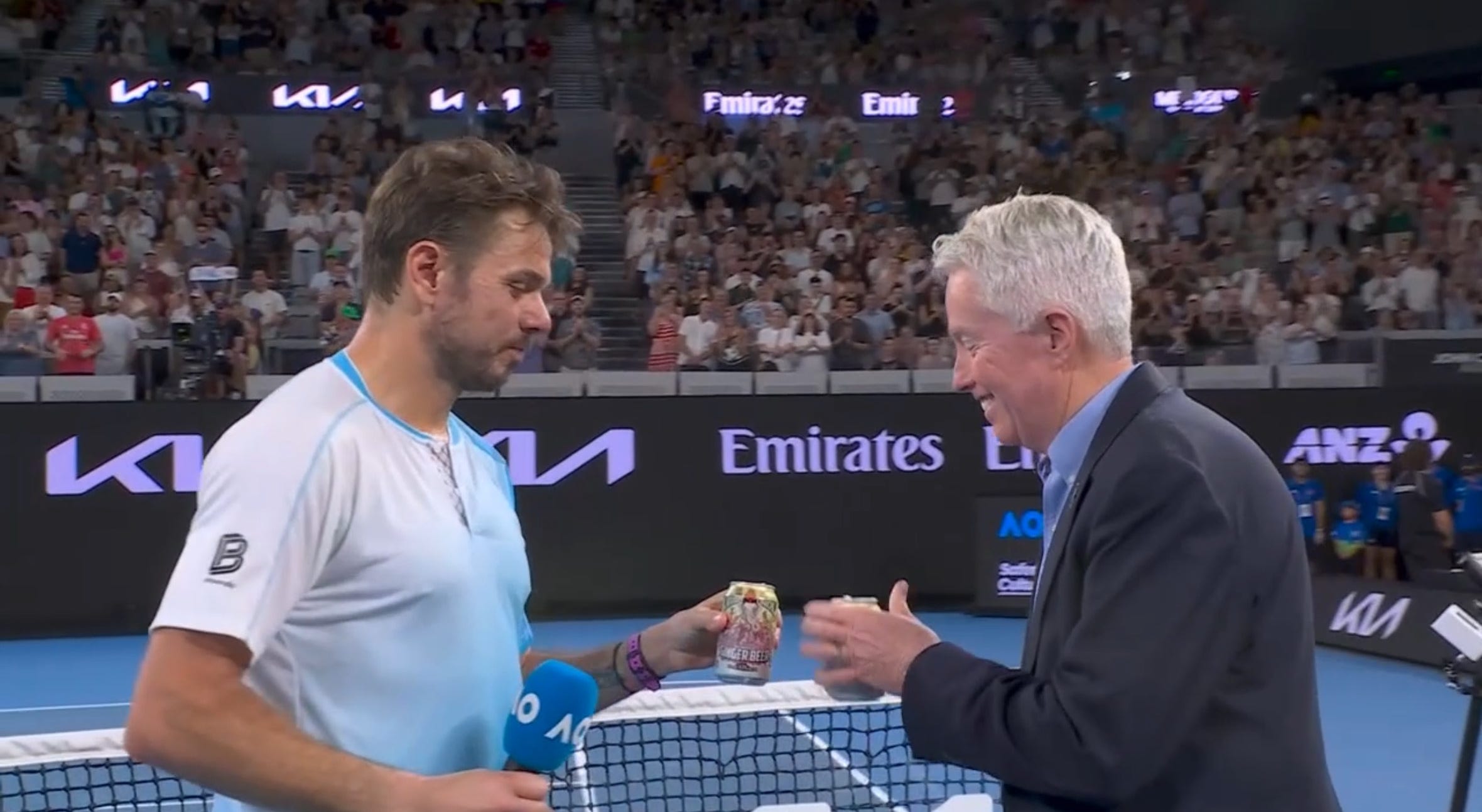 “All these years I’ve seen you guys enjoying the tennis. I’ve seen you being around, supporting us. [In the last round] I saw you drinking and told you I wanted [one]. Now I can enjoy. So I’d like to share a beer with Craig. You mind?” —Stan Wawrinka in his retirement ceremony