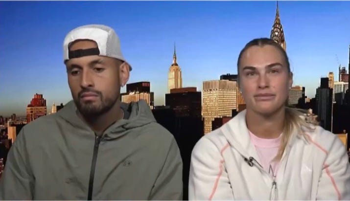 This week, Aryna Sabalenka and Nick Kyrgios appeared together on Piers Morgan Uncensored to promote their Dubai exhibition on December 28. When asked, both said they disapprove of trans athletes in women’s sports.