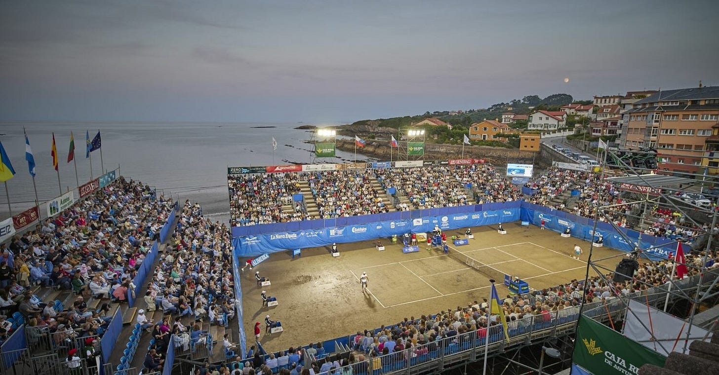 For over 50 years, the Torneo Tenis Playa tournament in Luanco has raced the tide, building a court on wet sand as the water recedes. Past winners on the beach include Grand Slam champions Juan Carlos Ferrero and Carlos Moyá.
